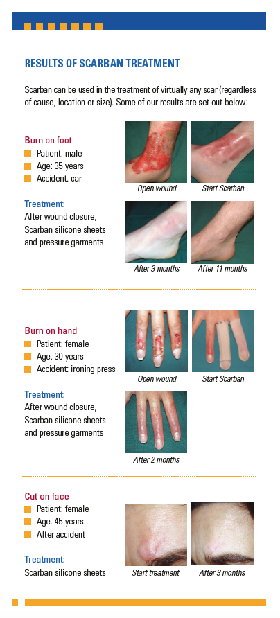 Covering the scar with a silicone sheet or gel reduces moisture loss to the same level as the surrounding skin. In response, the body stops making scar tissue. The result: